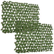 Lot de 2 haies artificielles feuilles de radis - treillis extensibles - brise-vue canisse végétale feuillage réaliste 2L x 1H m PE marron vert