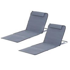 Lot de 2 tapis de plage rembourré - matelas de plage - nattes de plage - dossier inclinable multi-positions - sac transport inclus - métal polyester PE gris