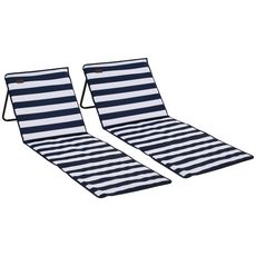 Lot de 2 tapis de plage rembourrés pliables - matelas de plage - dossier inclinable, rangement - métal polyester blanc bleu