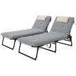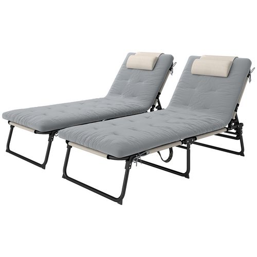 Lot de 2 transats bains de soleil pliables inclinables - tétière, matelas épais - métal tissu gris crème