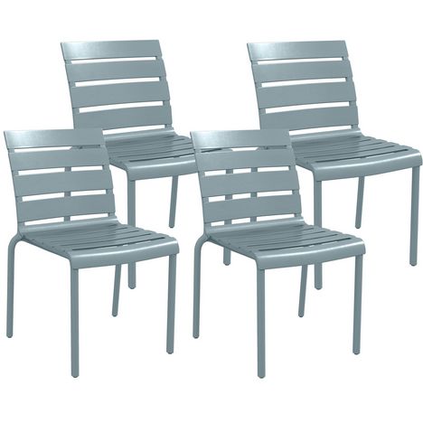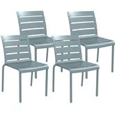 Lot de 4 chaises de jardin empilables avec assise et dossier à lattes gris