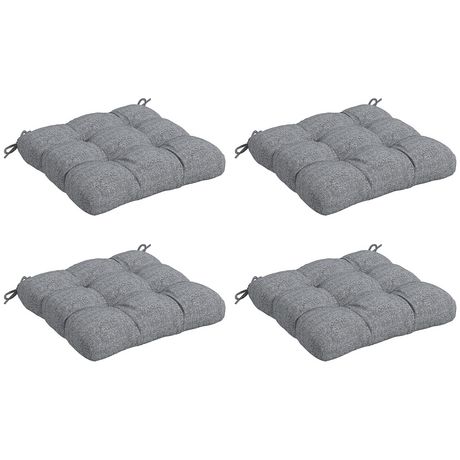 Ce superbe lot de 4 coussins de fauteuils de jardin dim. 48L x 48l cm avec garnissage mousse haute densité 10 cm et revêtement doux en polyester vous permettra d'être confortablement installé. Son style capitonné et coloris gris apportera une touche de décoration supplémentaire pour profiter au mieu