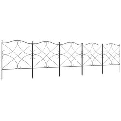 Lot de 5 clôtures de jardin décoratives en métal avec ornements - dim. totales 305L x 62H cm - noir