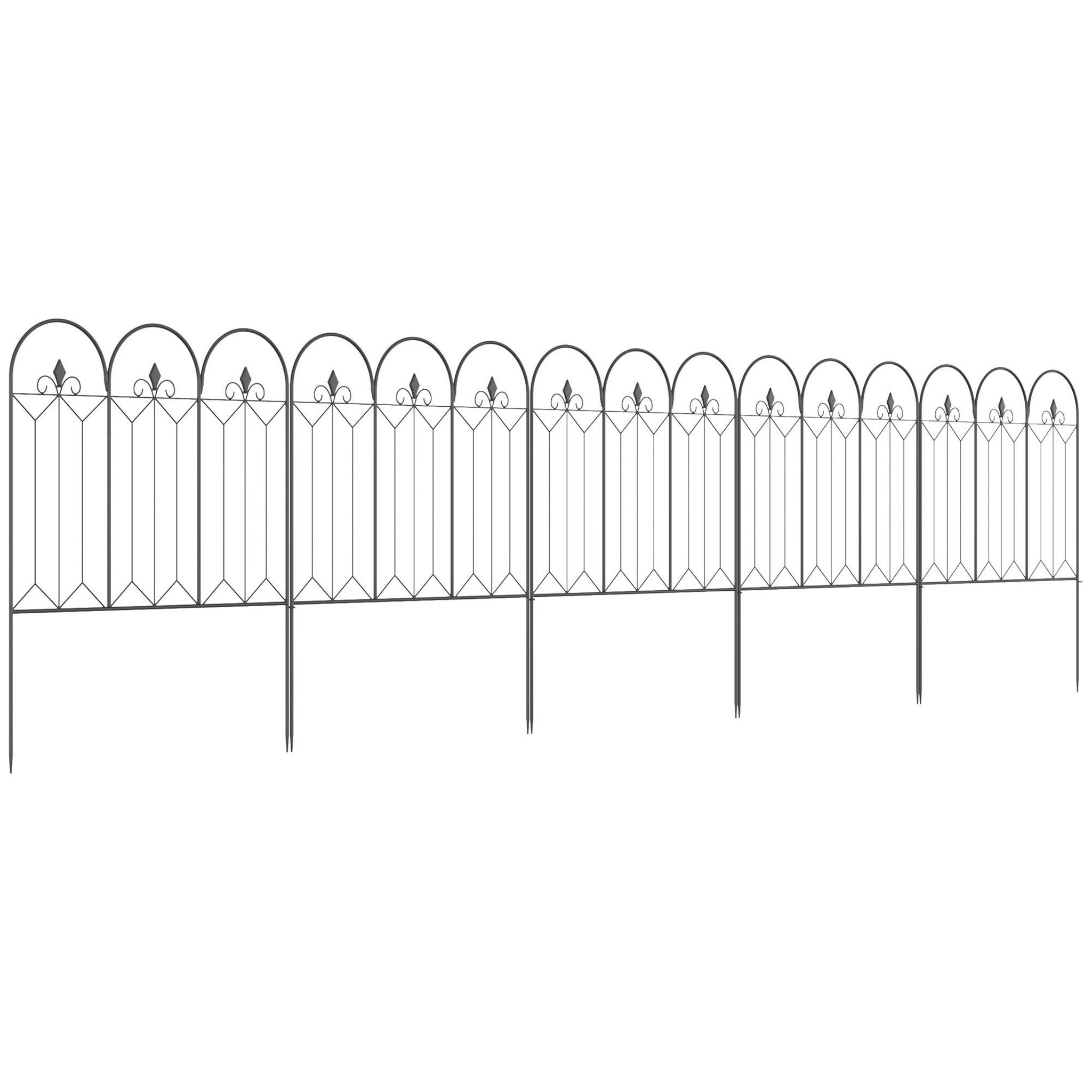 Si vous souhaitez avoir une jolie clôture pratique, ce produit d'Outsunny est fait pour vous. Cette clôture d'extérieur est équipée de piquets de terre qui peuvent être facilement insérés dans la terre pour faciliter l'installation. Les lignes arrondies et les ornements lui confèrent une touche de charme et d'élégance.
