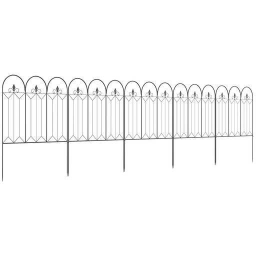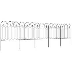 Lot de 5 clôtures de jardin décoratives en métal avec ornements - dim. totales 305L x 79,5H cm - noir