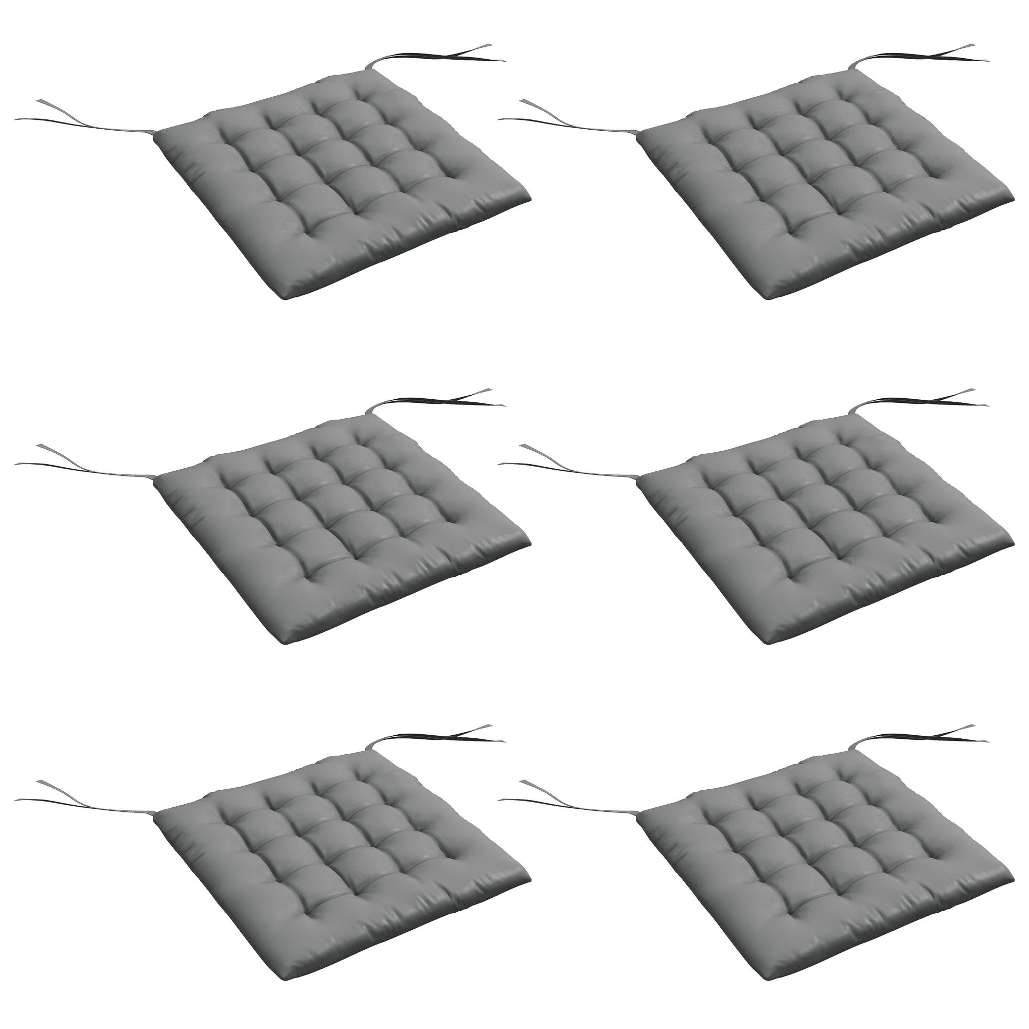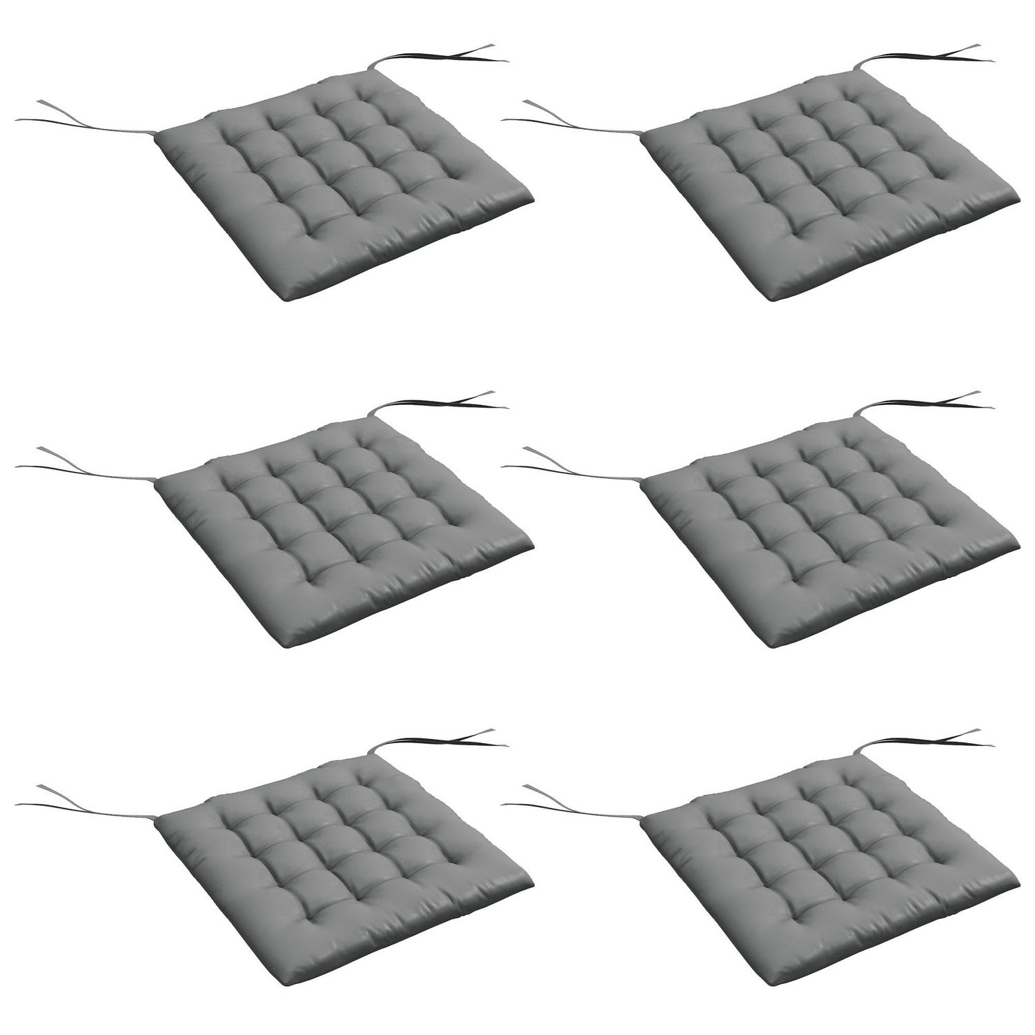 Lot de 6 coussins de fauteuils de jardin, dim. 40L x 40l cm, en mousse haute densité de 4 cm et revêtement en polyester doux. Style capitonné et couleur grise pour une touche de décoration supplémentaire. Idéal pour profiter de l'extérieur confortablement.