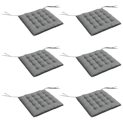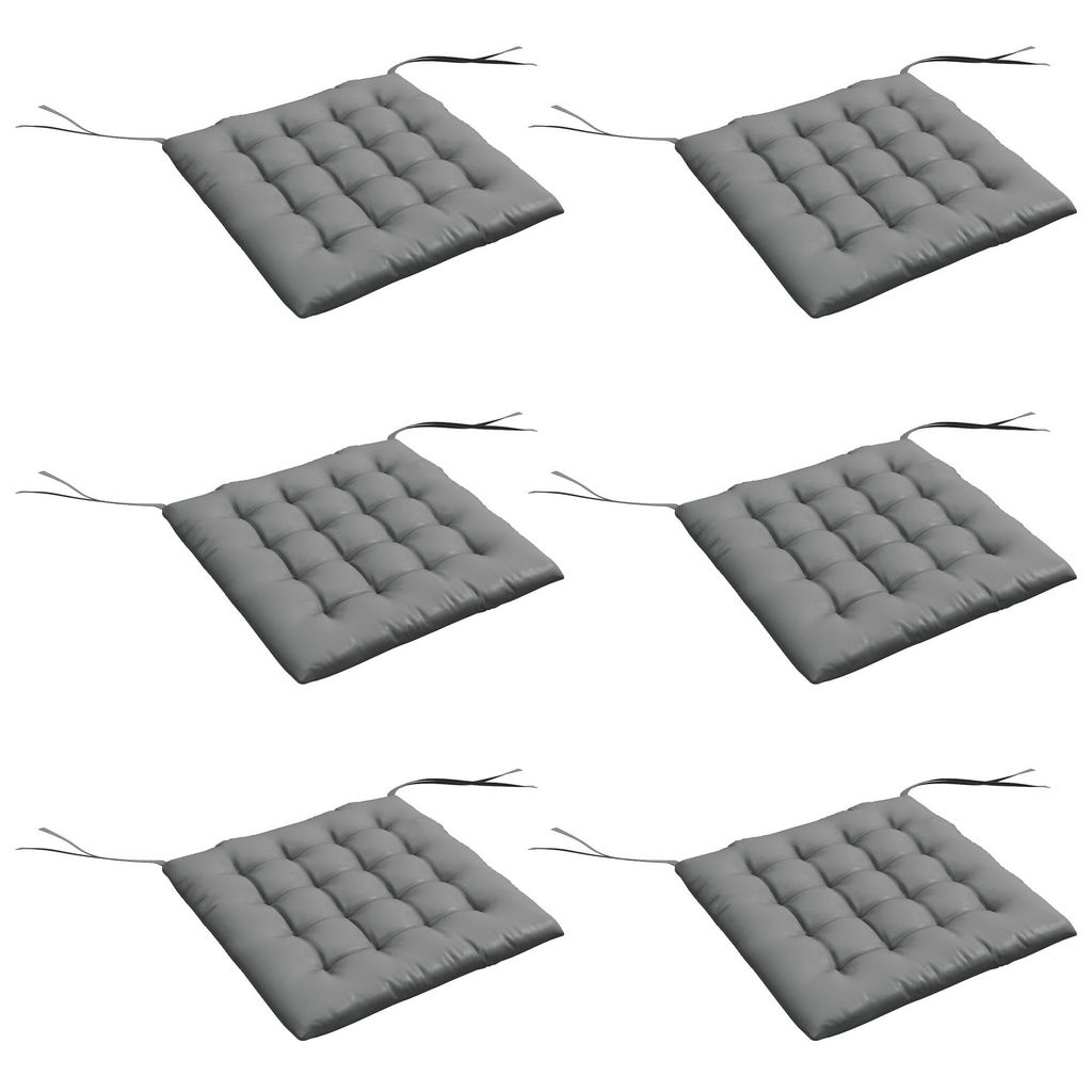Lot de 6 coussins de fauteuils de jardin, dim. 40L x 40l cm, en mousse haute densité de 4 cm et revêtement en polyester doux. Style capitonné et couleur grise pour une touche de décoration supplémentaire. Idéal pour profiter de l'extérieur confortablement.Caractéristiques :- Lot de 6 coussins de cha