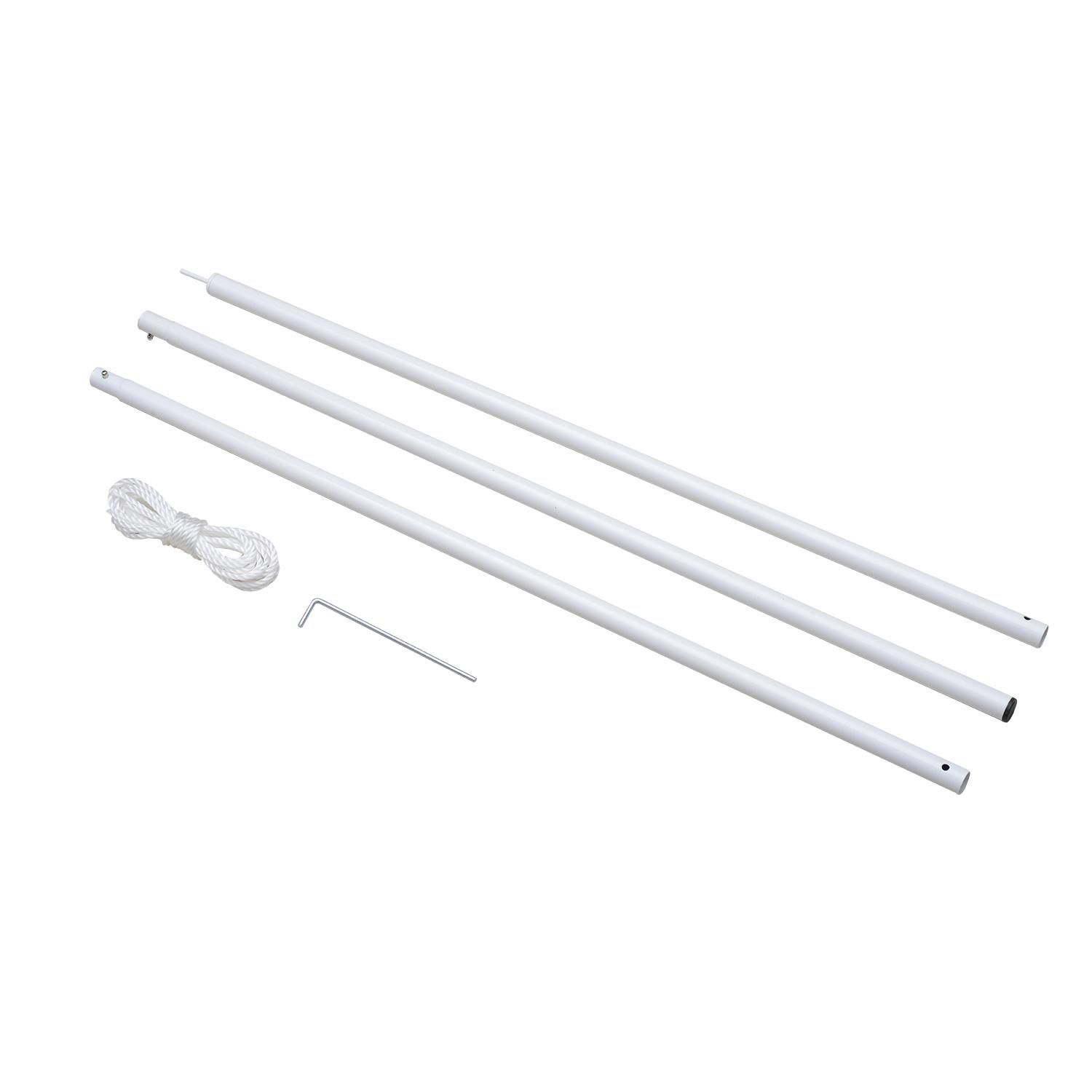 Mât de fixation pour voile d'ombrage - poteau pour voile d'ombrage - démontable 3 parties - hauteur réglable, accessoires fournis - Ø 2,5 cm x 3H m - métal blanc