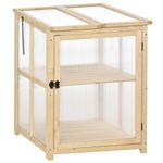 Mini serre de jardin 2 niveaux dim. 62L x 63l x 82H cm porte et panneau toit ouvrant bois sapin traité polycarbonate