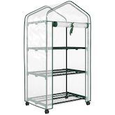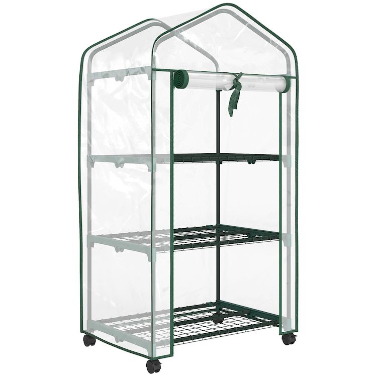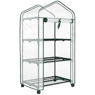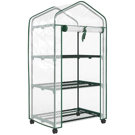 Mini serre de jardin 3 étagères porte enroulable 4 roulettes PE transparent