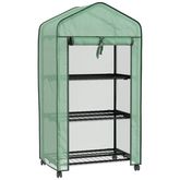 Mini serre de jardin 3 étagères porte enroulable 4 roulettes PE