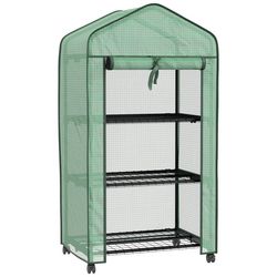Outsunny propose une mini-serre sur roulettes avec un support de fleurs à trois niveaux qui offre une solution compacte mais pratique pour les jardiniers de tous niveaux. La couverture PE améliorée avec une porte enroulable crée une température et une humidité souhaitables pour la croissance des plantes.