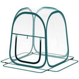 Mini serre de jardin pop up avec sac de transport - porte zippée enroulable - dim. 70 x 70 x 80 cm - PVC transparent vert