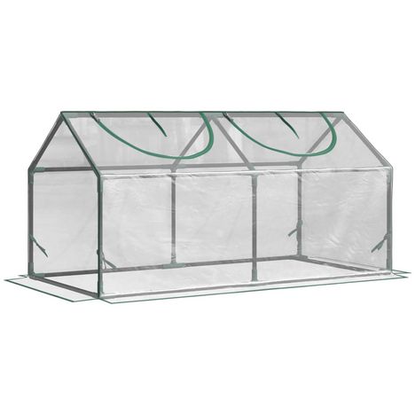 Mini serre de jardin serre à tomates 120 x 60 x 60 cm 2 fenêtres zippées enroulables acier thermolaqué PVC haute densité transparent