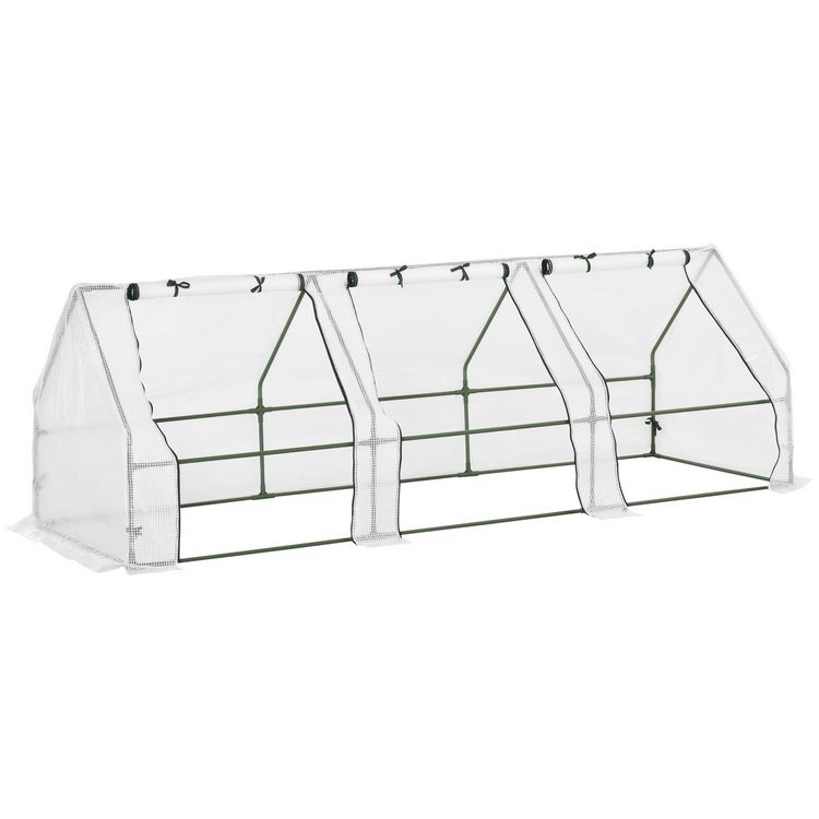 Mini serre de jardin serre à tomates 270L x 90l x 90H cm acier PE haute densité 140 g/m² anti-UV 3 fenêtres avec zip enroulables blanc