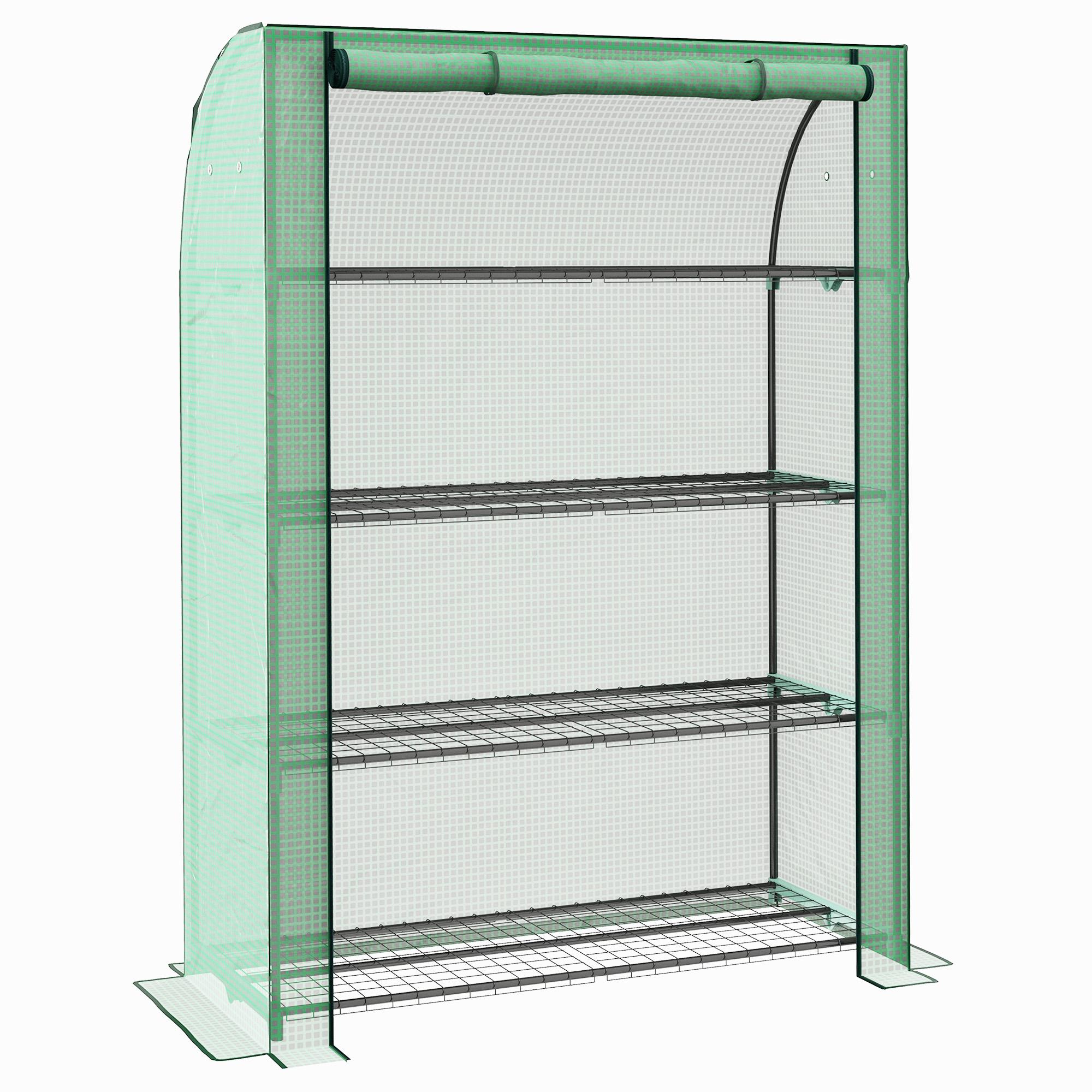 Mini serre de jardin serre de balcon serre à 4 étages avec châssis en acier & bâche en PE renforcée, intérieur et extérieur portable porte enroulable, 120 x 50 x 170 cm, vert
