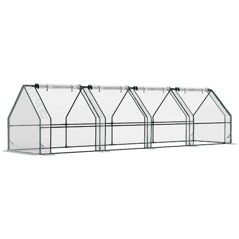 Mini serre tunnel de jardin fenêtres enroulables acier PE transparent