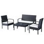Outsunny Ensemble salon de jardin 4 places : canapé, 2 fauteuils et table basse plateau verre trempé résine tressée 4 fils imitation rotin noir coussins blanc