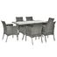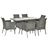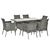 - Ensemble salon de jardin 7 pièces composé d'une grande table et de 6 fauteuils avec coussins d'assise, dossiers hauts légèrement inclinés et accoudoirs