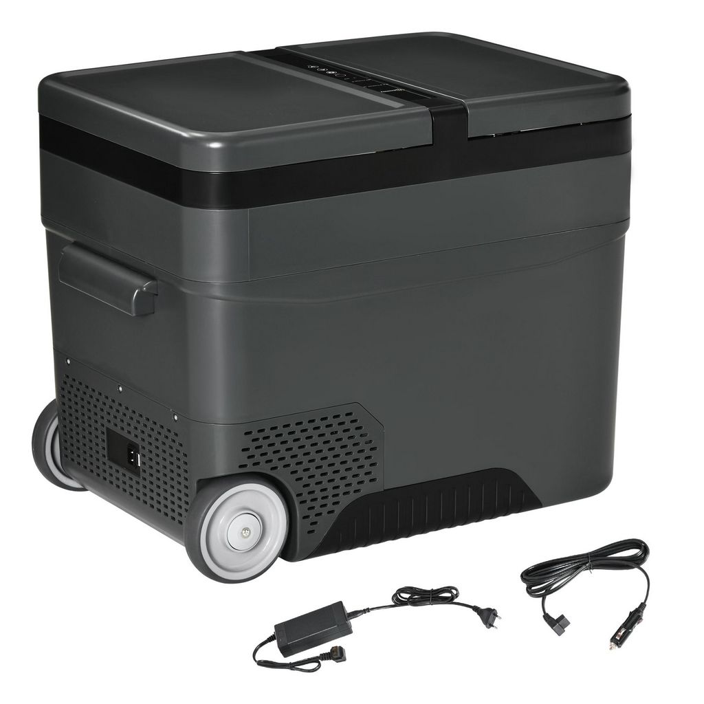 Outsunny Glacière-congélateur portable à compression 2 compartiments -22°C - 10°C 45L prise alume-cigare + adaptateur inclus gris noir