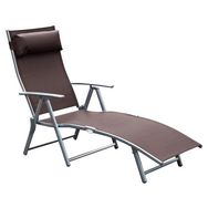 Outsunny transat chaise longue bain de soleil pliable dossier inclinable multi-positions têtière fournie 137L x 64l x 101H cm métal époxy textilène marron