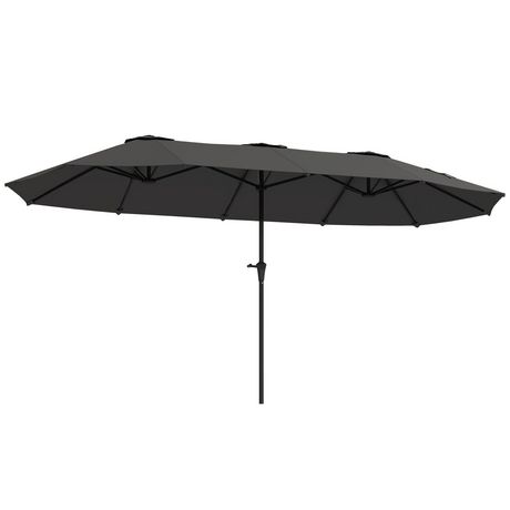 Parasol de jardin grande taille dim. 4 x 2,2 x 2,3 m manivelle métal époxy tissu haute densité 180 g/m² gris