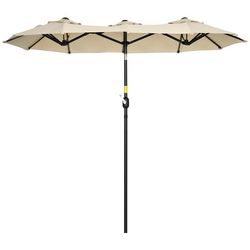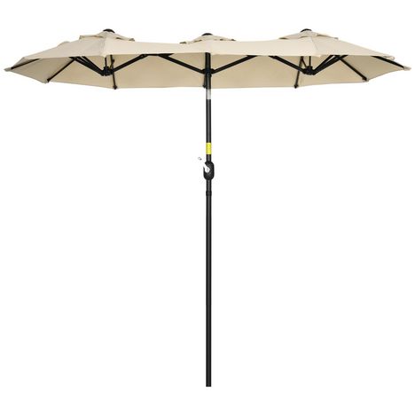 Parasol de jardin inclinable grande taille ouverture fermeture manivelle acier polyester haute densité beige