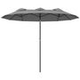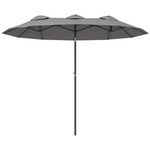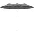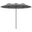 Ce grand modèle de parasol double inclinable en acier et polyester haute densité couvrant une longueur totale de 2,85 m vous offrira une protection optimale contre le soleil. Vous pourrez ainsi profiter de votre extérieur en famille ou entre amis sans être dérangé pas les rayons intenses du soleil e