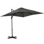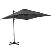 Parasol déporté carré inclinable manivelle avec pied en acier dim. 2,45L x 2,45l x 2,45H m métal alu. polyester haute densité gris