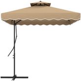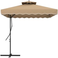Parasol déporté carré pied en croix double toit lambrequin vague douce kaki