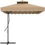 Cet élégant parasol déporté est idéal pour profiter entre amis ou en famille de votre extérieur ! Ce parasol déporté comprend une base croisée pour plus de stabilité, tandis que la commande à levier permet un déploiement sans effort. Profitez d'une oasis ombragée sous son auvent en polyester enduit de PA aux dimensions généreuses, complété par un toit aéré à deux niveaux.