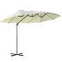 Parasol déporté grande taille XXL inclinable dim. 4,4L x 2,7l x 2,5H m piètement en acier inclus polyester crème