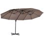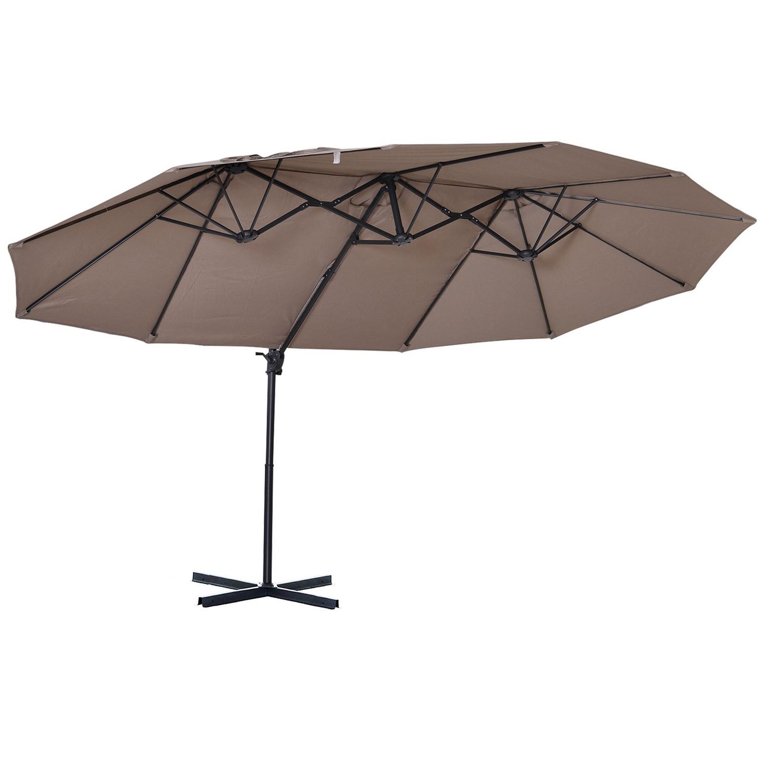 Parasol déporté grande taille XXL inclinable dim. 4,4L x 2,7l x 2,5H m piètement en acier inclus polyester marron