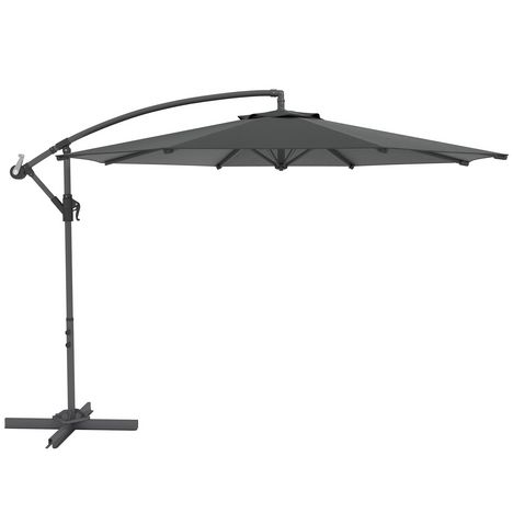 Parasol déporté octogonal inclinable rabattable diamètre 2,97 m parasol de jardin avec pied en croix anthracite