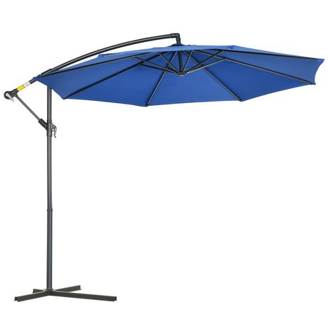 Parasol déporté octogonal inclinable rabattable diamètre 2,97 m parasol de jardin avec pied en croix bleu