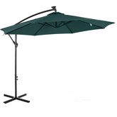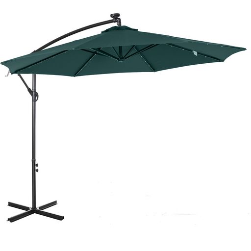 Parasol déporté octogonal parasol LED inclinable manivelle piètement acier dim. Ø 3 x 2,6H m vert