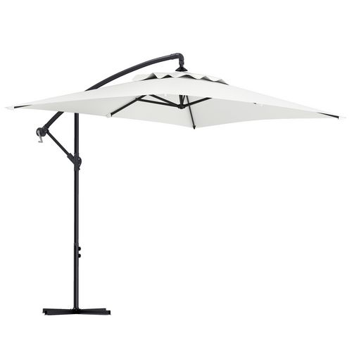 Parasol déporté rectangulaire dim. 294L x 193l x 250H cm pied en croix crème