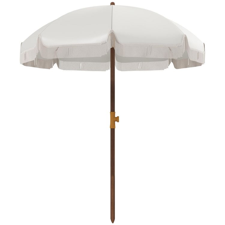 Parasol droit de plage jardin style bohème à franges UV40+ crème