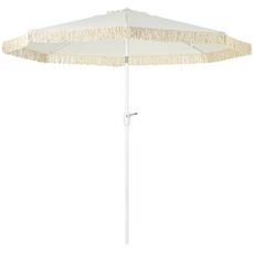 Parasol inclinable de jardin style bohème à franges polyester haute densité crème