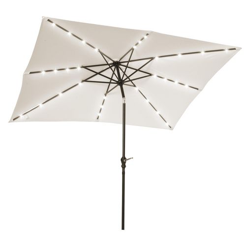Parasol lumineux rectangulaire inclinable dim. 2,68L x 2,05l x 2,48H m parasol LED solaire métal polyester haute densité blanc cassé
