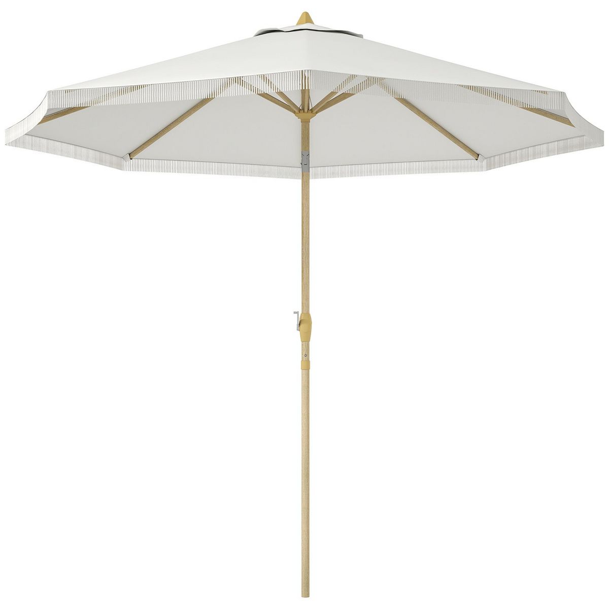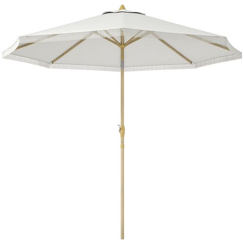 Parasol octogonal inclinable Ø 2,65 x 2,44H m mât baleine métal aspect bois polyester haute densité 180 g/m² blanc
