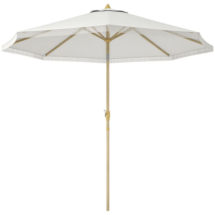 - Joli parasol avec mât/baleines métal aspect bois et lambrequin à franges blanc