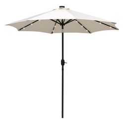 Parasol octogonal inclinable Ø 2,67 x 2,4 m lumineux solaire 24 LED polyester haute densité 180 g/m² crème