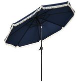 - Joli parasol avec mât noir et lambrequin à franges beige