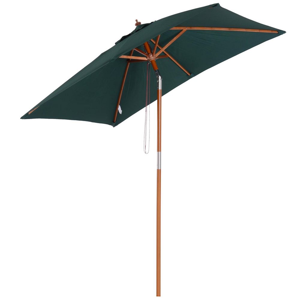 Parasol rectangulaire inclinable bois polyester haute densité 2L x 1,5l x 2,3H m vert foncé