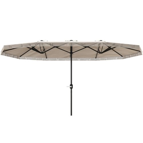 Profitez du Parasol de jardin double-face d'Outsunny, large de 4,5 m avec revêtement UPF30+. Système de levage à manivelle facile, tissu polyester résistant aux UV qui garde sa couleur, parfait pour ajouter une touche élégante et pratique à votre jardin ou patio.