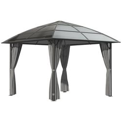 Ce magnifique pavillon de jardin en alliage d'aluminium, acier époxy et polycarbonate sera idéal pour profiter de votre extérieur dès l'arrivée des beaux-jours ! Doté de rideaux latéraux zippés pour une fermeture intégrale si besoin, vous pourrez vous adapter à toutes les conditions climatiques pour