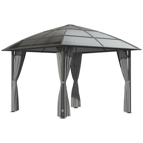 Ce magnifique pavillon de jardin en alliage d'aluminium, acier époxy et polycarbonate sera idéal pour profiter de votre extérieur dès l'arrivée des beaux-jours ! Doté de rideaux latéraux zippés pour une fermeture intégrale si besoin, vous pourrez vous adapter à toutes les conditions climatiques pour le bonheur des plus petits comme des plus grands !