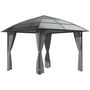 Pavillon de jardin barnum rigide dim. 3,05L x 3,05l x 2,7H m 4 rideaux zippés alu. acier polycarbonate noir polyester gris