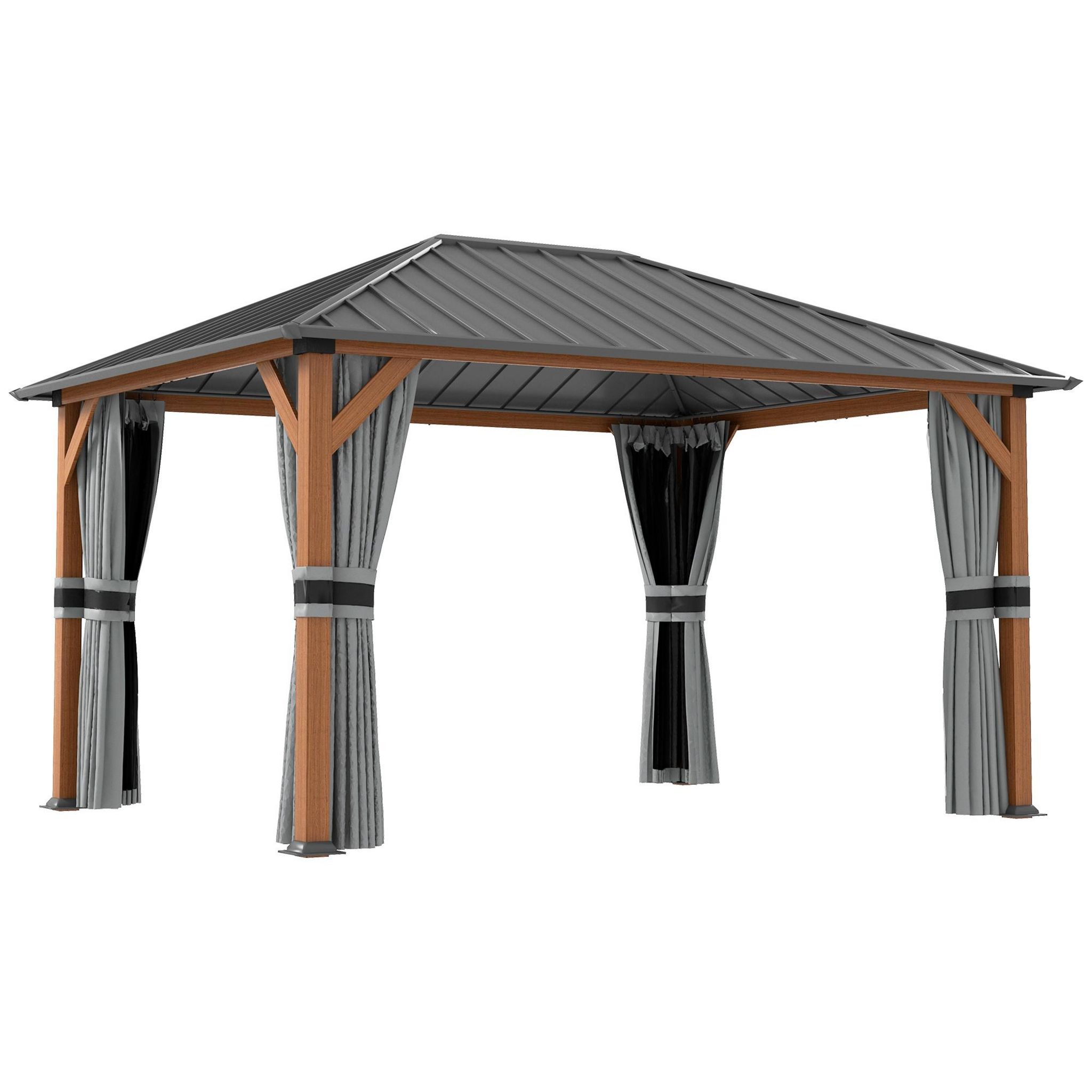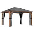 Pavillon de jardin structure alu aspect bois toit rigide métal galvanisé rideaux moustiquaires